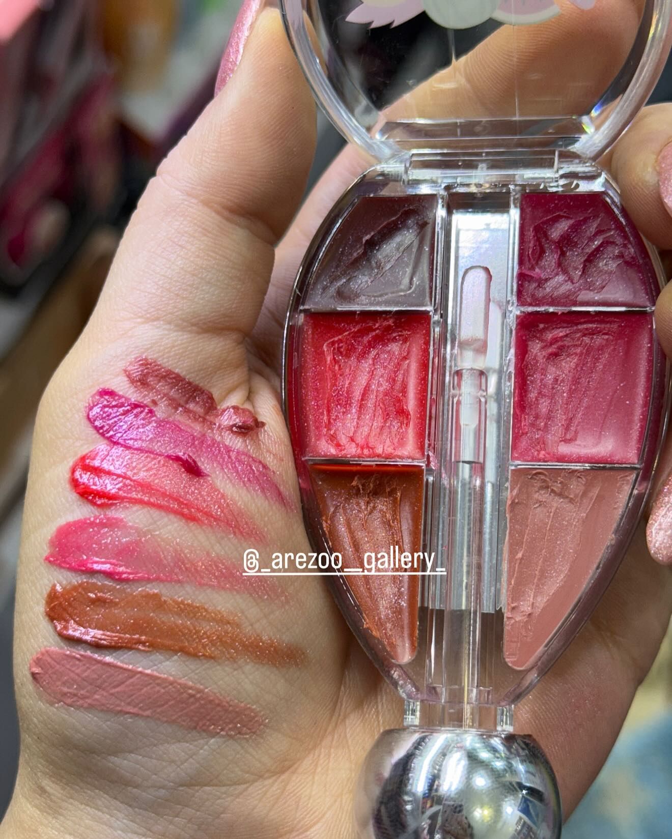 - دارای 6 رنگ لیپ گلاس با قابلیت ترکیب رنگ